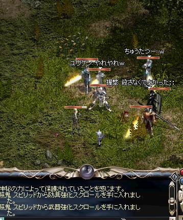 みかん定食さん率いるFlyingStar血盟です なかなか陽気な方が多くて(^_^;) 毎日クラハンがあって、飽きて単騎なんてことも減ってきたかな んなもんだから、ボスにもちょくちょく会えるようになって来ました